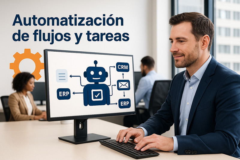 Ejemplos: envío automático de informes, aprobación digital de compras, sincronización de datos, alertas de tareas o generación automática de informes. Todo esto optimiza los recursos y reduce los errores humanos.